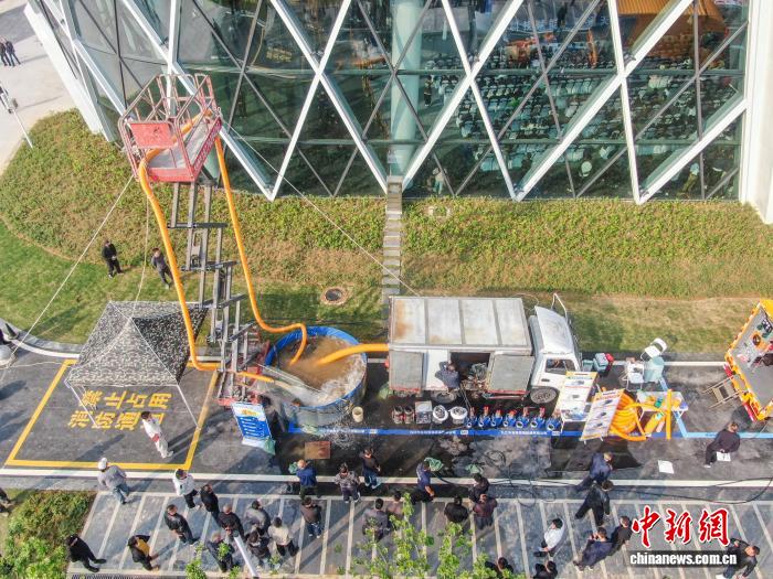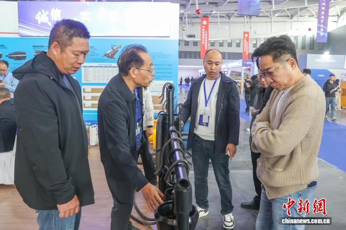 图为瑞昌本地参展商工作人员在演示管道清淤机器人,该机器人可替代人力进入管道进行清淤。中新社记者 刘力鑫 摄
