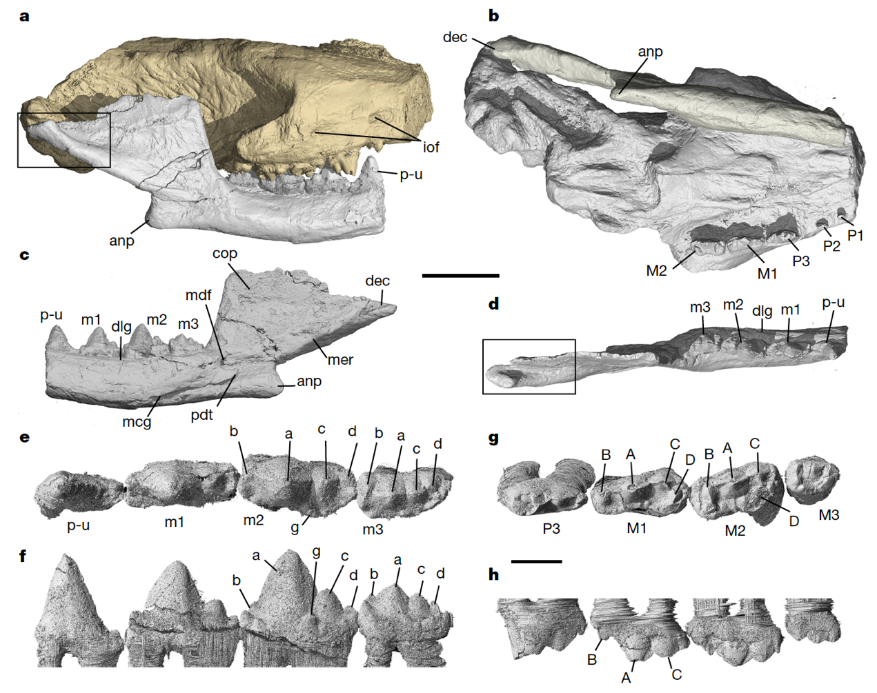 据了解,两件化石的其中一件为四川自贡中侏罗统的三列齿兽类——川南多齿兽,该物种于1984年由何信禄和蔡开基命名,原作者曾提及该标本具有“关节突”并可能缺失部分齿骨后骨,但在其后四十余年中未获深入研究。最新开展的研究则是通过三维重建和形态分析,揭示其具有形态特异的齿骨髁-颧骨窝次生颌关节,这是在四足动物中首次发现,突破了科学界以往对次生关节形态的认知框架。